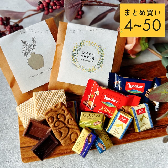 【まとめ買い専用 お菓子プチギフトセット】 退職や送別、イベントのお礼などにぴったりな個包装お菓子のプチギフトセットです。 かわいらしいサイズ感と上品なラッピングで、職場や学校、法人イベントなどでも喜ばれる人気商品。 ホワイトデーやバレンタインのお返しにもおすすめです。 【選ばれる理由】 ■1個ずつ個包装で配りやすい ■プチプラなのに高見えする上品なデザイン ■オフィスや学校、式典など幅広いシーンに対応 ■シンプルで誰にでも贈りやすい万能ギフト 見た目にも華やかで清潔感のある仕様なので、女性・男性問わず喜ばれるギフトです。 まとめ買いやばらまき用途にも最適です。 【こんなシーンにおすすめ】 ■退職・送別・卒業・お礼ギフト ■謝恩会・発表会・イベントの参加記念に ■職場や学校でのお配り、ホワイトデーのお返しにも ■年末年始のご挨拶や小さなプレゼントにも 【セット内容】 お菓子セット:大きめお菓子1個+小さめお菓子2個 (例:GODIVA、スイスデリスチョコレート、Lotusウエハース、クッキーなど) ※内容は季節や在庫状況により一部異なる場合がございます。 ※チョコレートや焼き菓子などはブランドアソートとなります。 【メッセージについて】 「ありがとう」「お世話になりました」など、感謝を伝えるシールが選べます。 気持ちを添えて贈れる、さりげないギフトです。 お礼やご挨拶などでも使いやすい仕様です。 【ラッピングについて】 KOS-PLUSオリジナルの無料ラッピング付き。 やさしいデザインで、男女問わずお渡しできます。 1つずつ個包装のため、届いてすぐに配布可能です。 ※時期や在庫により、ラッピング仕様が一部異なる場合がございます。 【配送について】 通常ご注文から2〜3営業日以内に発送いたします。 お届け日時の指定や大量注文も柔軟に対応しております。 納品書・明細書は同梱いたしませんので、直送ギフトにも安心してご利用いただけます。